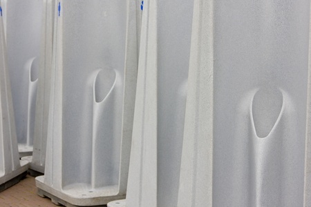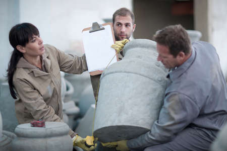 Concrete workshop - a craftsman putting a mold on a concrete product