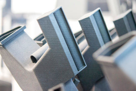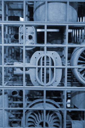 Plastic model printed on 3D printer from powder close-up. Objects created on 3D printer from polyamide powder. New 3D printing technology. Modern additive progressive 3D printing technologies. MJF