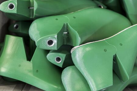 Plastic lasts used in the manufacture of shoes. Row of plastic shoe lasts used to manufacture modern day shoes. The equipment used for shoe design