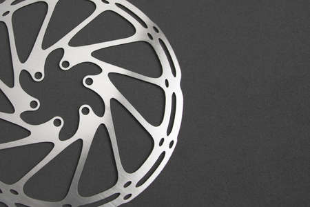 New brake disc for bicycle hydraulic brakes with yellow background and copy space