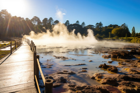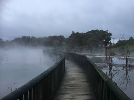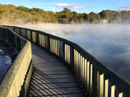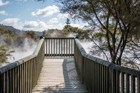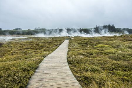 Boardwalk in Rotorua thermal zone, North island, New Zealand