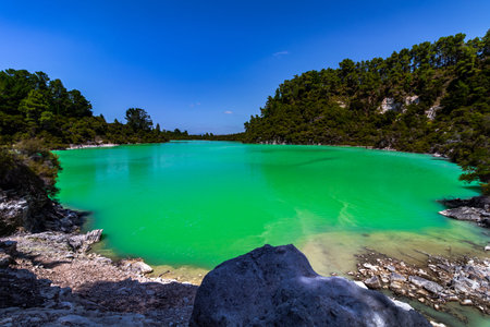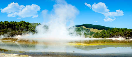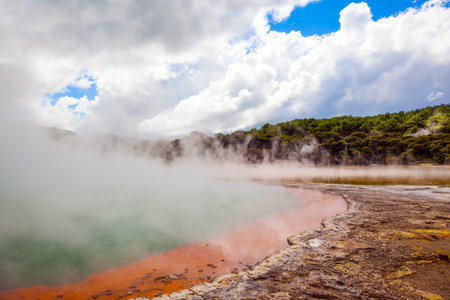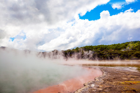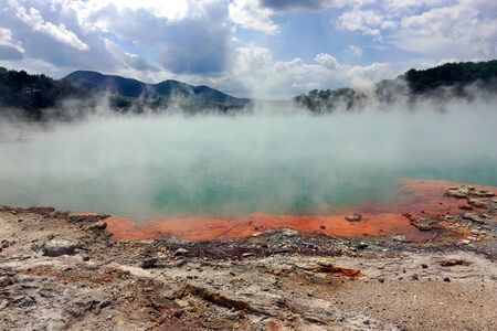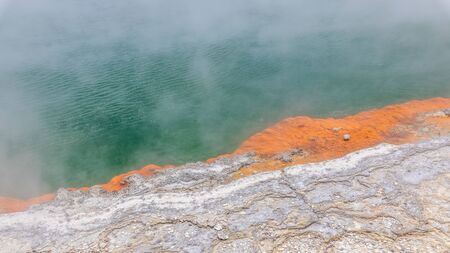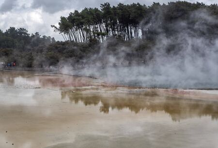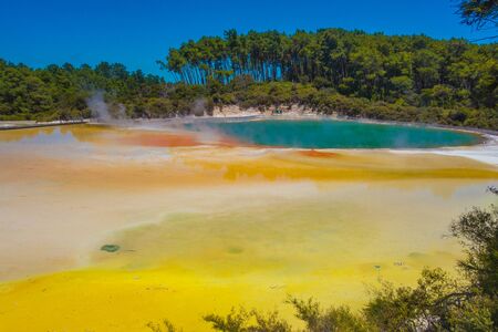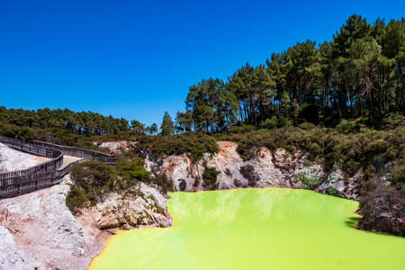 Wai-O-Tapu. The unique geothermal area of Rotorua. The North Island of New Zealand. Thermal Wonderland Champagne. The concept of exotic, extreme, ecological and photo tourism