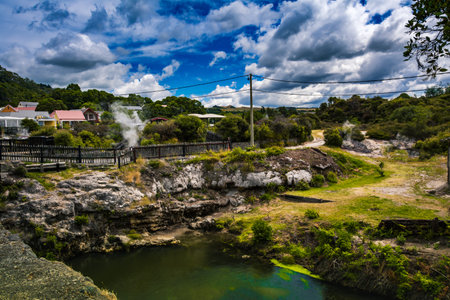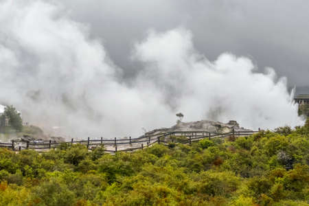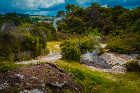 Scenery around the Geothermal Valley Te Puia in New Zealand