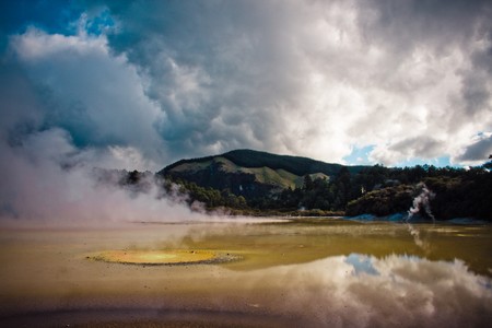 Steaming Wai-O-Tapu sulfur pond, New Zealand