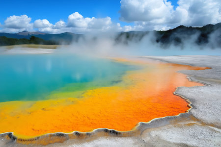 AI Generated. Hot Spring with Steam and Colorful Minerals