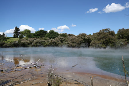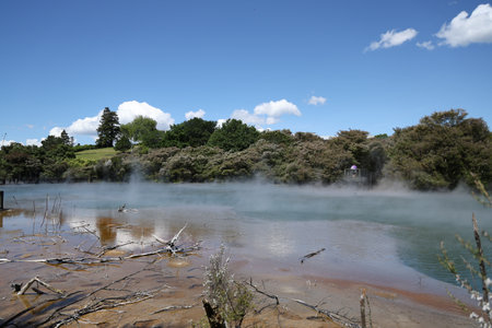 Geothermal pond at Kuirau park in Rotorua, New Zealand