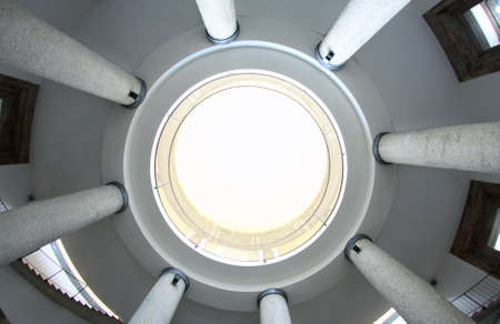 a beautiful background with a round glass window in the ceiling in the modernist new eyes of the building
