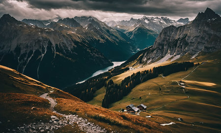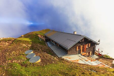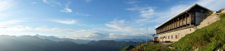Panoramic view of alpine hut in the Alps. Switzerland