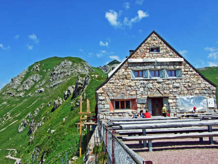 Mountain hut on the Säntis and view of the surrounding Alps