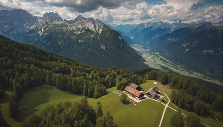 Aerial view of the alpine landscape in Bavaria, Germany