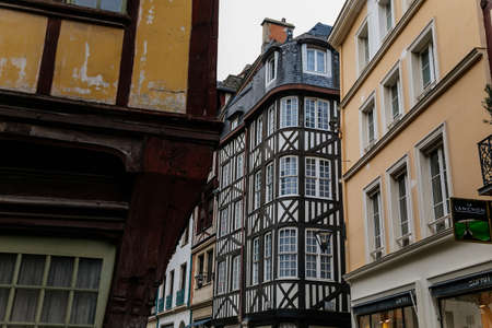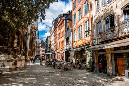 ROUEN, FRANCE - September 07, 2017: Street view with beautiful half-timbered houses in the old town of Rouen city, the capital of Nrmandy region in France
