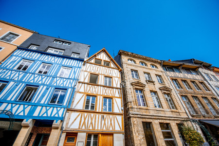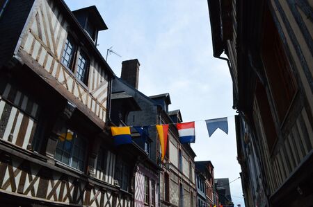 Beautiful colorful half-timbered houses in Rouen city, the capital of Normandy region in France