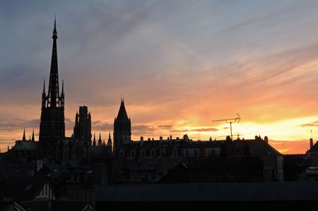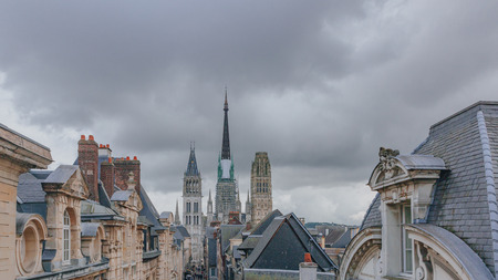 France Rouen: Rouen is the historical capital of Normandy. View of the old city during the sunset