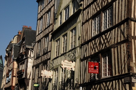 Ancient half-timbered houses on the street of the old town in Rouen city, the capital of Normandy region in France
