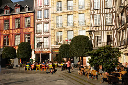 ROUEN, FRANCE - JUNE 17, 2014: Joan's D'arc square with tourists in Rouen, Normandy, France. Around 1.5 million tourists flock to Rouen each year.