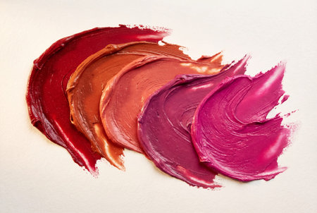 From light to deep color lipstick texture. Isolated on white. Copy space.