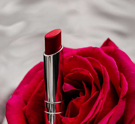luxe red lipstick and a wonderful rose - make-up and cosmetics styled beauty concept, elegant visuals