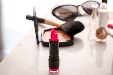 lipstick on colored cosmetics background