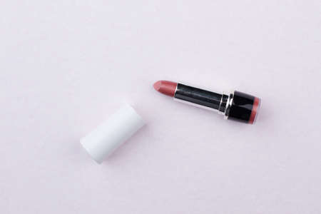 makeup cosmetic red lipstick on pink background