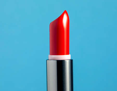 A red lipstick against blue