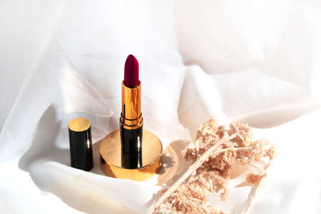 lipstick on a silk background elegance