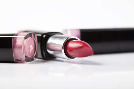 Lipstick and Foundation on a white background. Cosmetic.