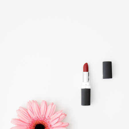 beautiful lipstick on white background. copy save. March 8 - International Women's Day. holiday for girls