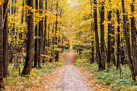 Path in autumn forest. Beautiful nature scene. Fall season concept.