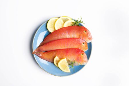 Fresh red mullet isolated on white background