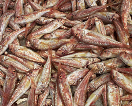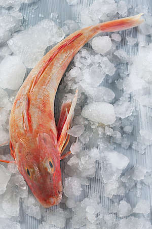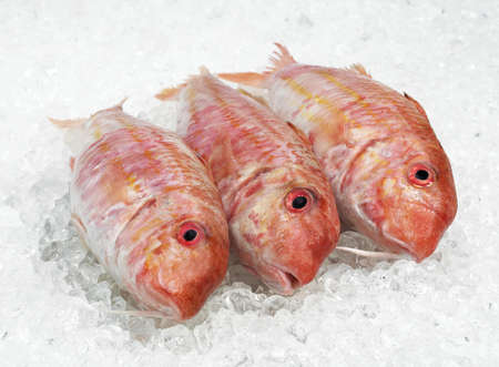 Red Mullet, mullus surmuletus, Fresh fishes on Ice