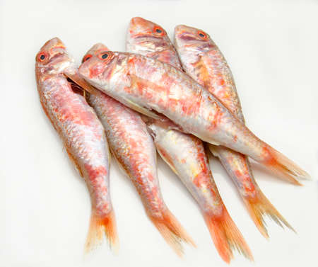Fresh red mullet on white background