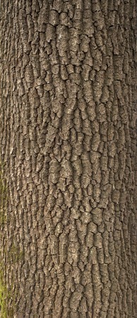 Moss on it. Vertical photo of a tree bark texture. Relief creative texture of an old oak bark.