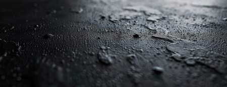 Water droplets on a dark textured surface, creating a contrast of light and shadow that adds elegance and depth to the background.