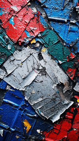 Abstract weathered plaster wall texture with colorful stains and cracks for creative design