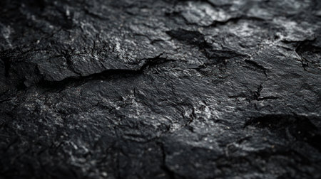 A detailed close-up of a dark, rough coal surface, showcasing its natural, uneven textures and deep crevices, ideal for industrial or natural resource themes.
