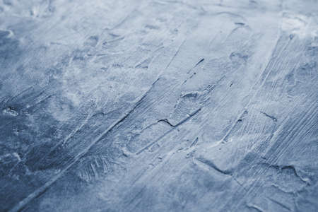 Texture of decorative plaster. Stylized banner with space for text. Grungy concrete wall with colorful lighting. Old gray surface for background in soft focus with blurred edges and film grain.