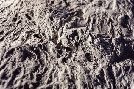 Background of dirty concrete floor with footsteps and lines on it.