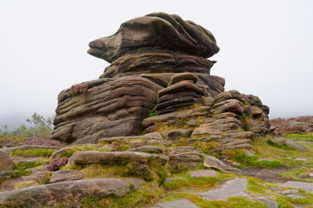 A foggy damp day at the Mother Cap gritstone rock on Suprise View in Derbyshires Peak District