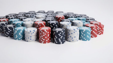 Colorful Poker Chips Pile in Studio Shot, A Game of Chance Item View for Leisure and Entertainment