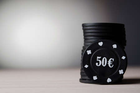 chips for playing poker in a casino close-up on the table. Gambling, poker, casino concept