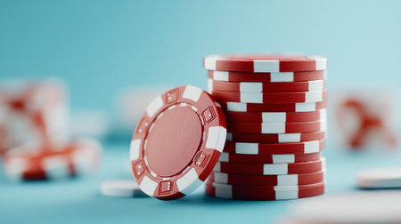 Vibrant Casino Poker Chips on Blue Background Red and Blue Game Piece Stacks for High Stakes Gambling Fun AI Generative