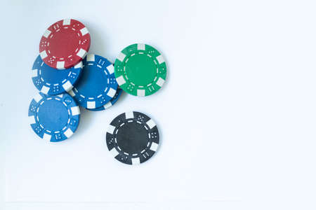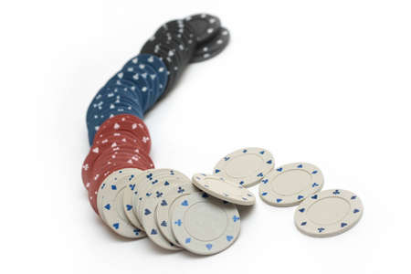 Poker chips isolated on white background. Casino concept. Selective focus.