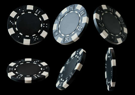 Poker chips falling on black background. Casino concept. 3D Rendering