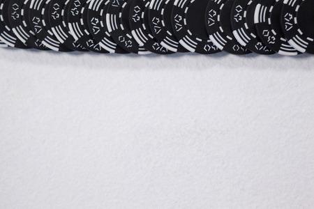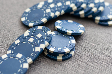 gambling, fortune, game and entertainment concept - poker chips on casino table close up