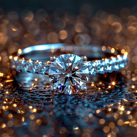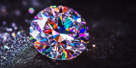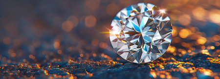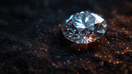 Stunning close-up of a sparkling diamond resting on a dark surface, surrounded by a mesmerizing bokeh background, ideal for luxury design projects.