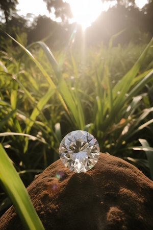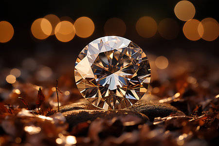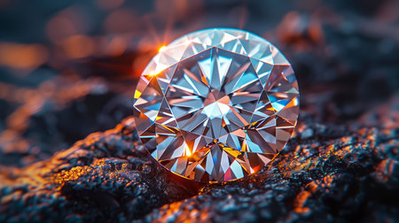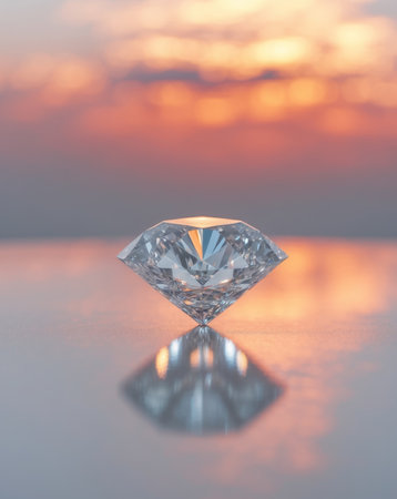 AI Generated. Beautiful diamond sparkling at sunset with glistening reflections on the surface