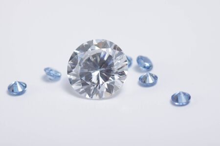 Jewelry diamond on blue glitter background. Macro photo with shallow depth of field