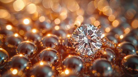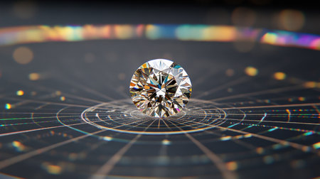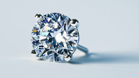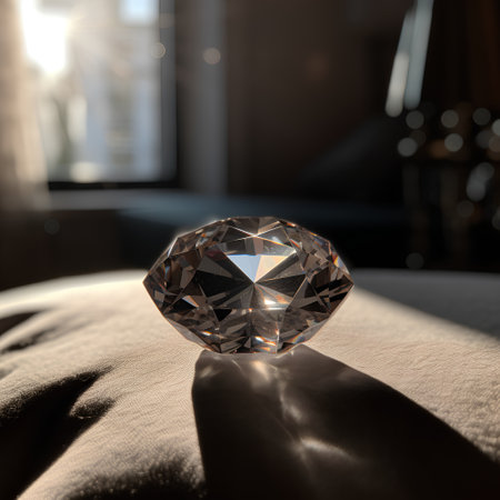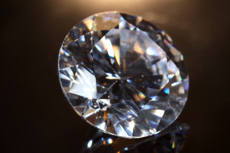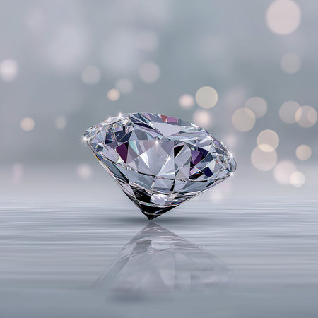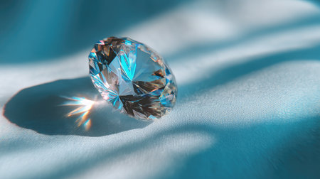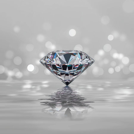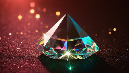Close-up of sparkling diamond with light reflections, symbol of love and timeless beauty.