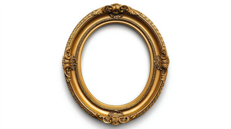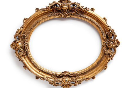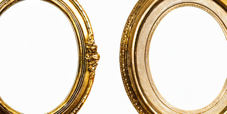 wooden gold frame for painting or picture on white background. for print, website, poster, banner, logo, celebration
