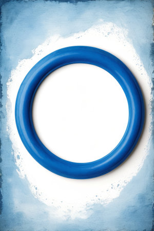 Empty showing simple thin wooden ring or hoop casting a subtle shadow on a smooth muted blue background keywords:...